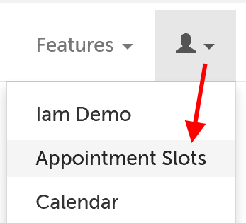 1. Click on the profile icon in the upper right-hand corner, and select "Appointment Slots" from the drop-down menu.