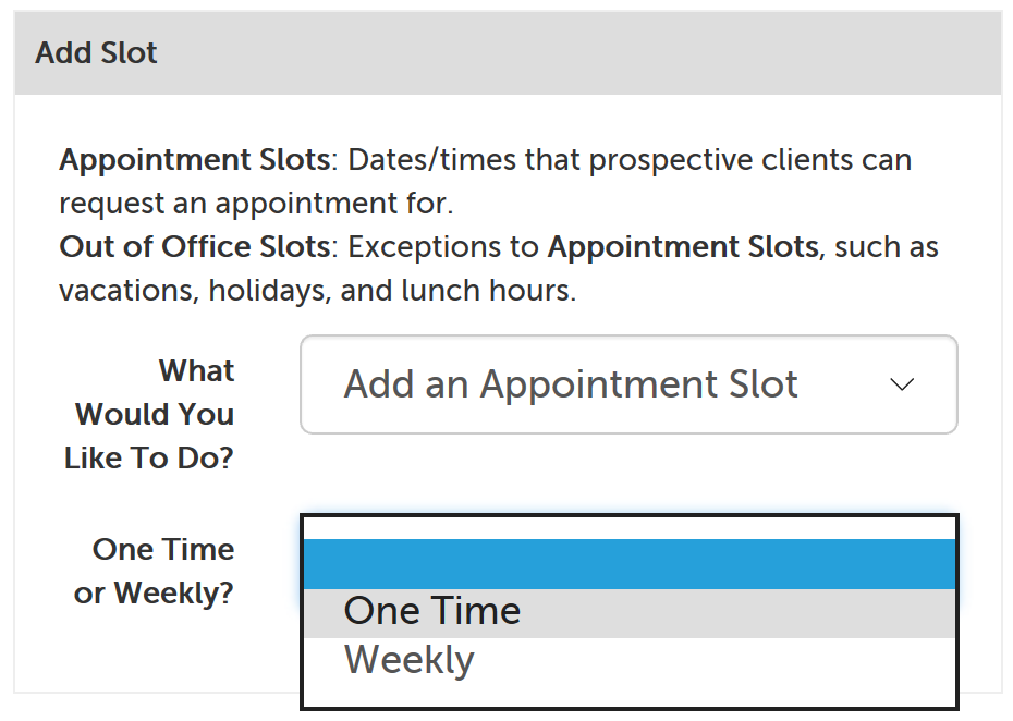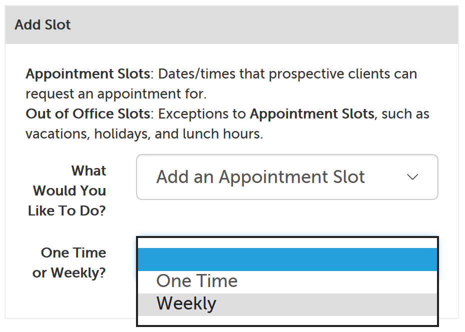 Add a Weekly Appointment Slot