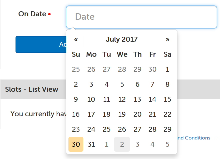 6. Click on the "Date" field to make the datepicker appear, and select the date the appointment slot should be for.