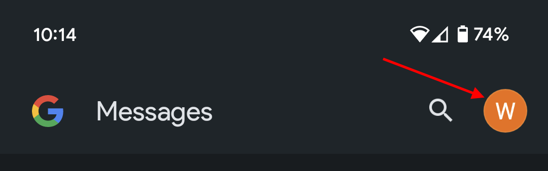 2. In the upper right hand corner, tap on your profile icon. (In this example, it is a "W", but your icon may be a different letter, or your profile picture.)